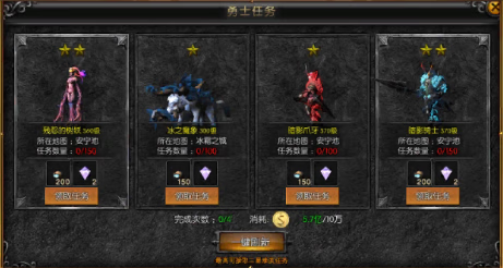 勇士任务每日最多可完成4次,建议尽量接取3星勇士任务,报酬较为丰厚,副本材料,卓越精华等你来拿!